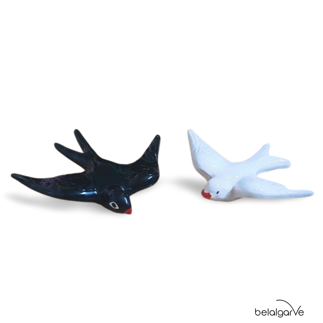 Este elegante par de andorinhas de cerâmica, pintadas à mão, é uma homenagem ao artesanato português e ao simbolismo destas aves na cultura popular. Com um design delicado e atemporal, são perfeitas para decorar tanto interiores quanto exteriores