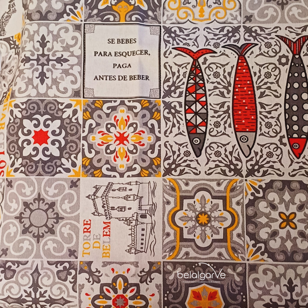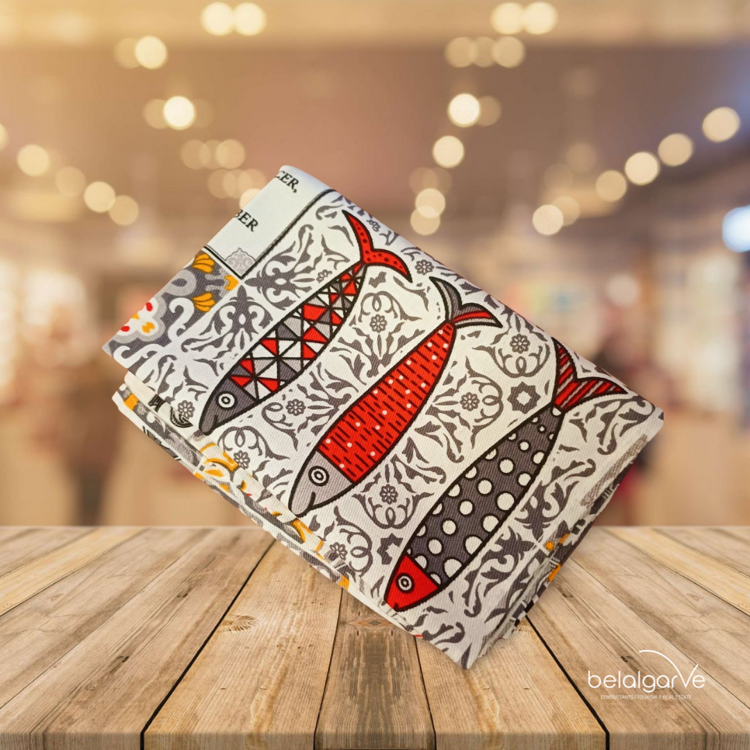The tea towels have, among other things, a design of Portuguese sardines, which is widely represented in Portugal.