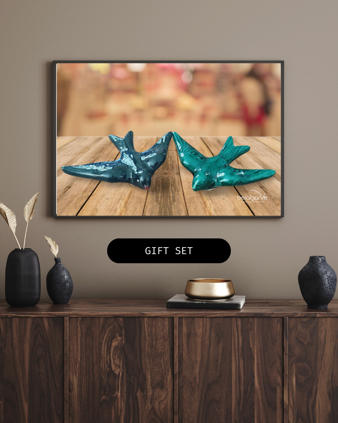 Deze elegante keramische zwaluwen, met de hand geschilderd, zijn een eerbetoon aan de Portugese ambacht en de symboliek van deze vogels in de volkscultuur. Met een tijdloos en verfijnd ontwerp zijn ze perfect voor zowel binnen- als buitenruimtes.